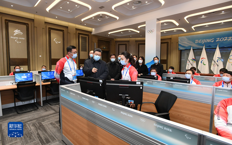 1月4日,习近平在中共中央政治局委员、北京市委书记蔡奇和市长陈吉宁陪同下,深入体育场馆、媒体中心、训练基地等,实地了解筹办备赛情况。
