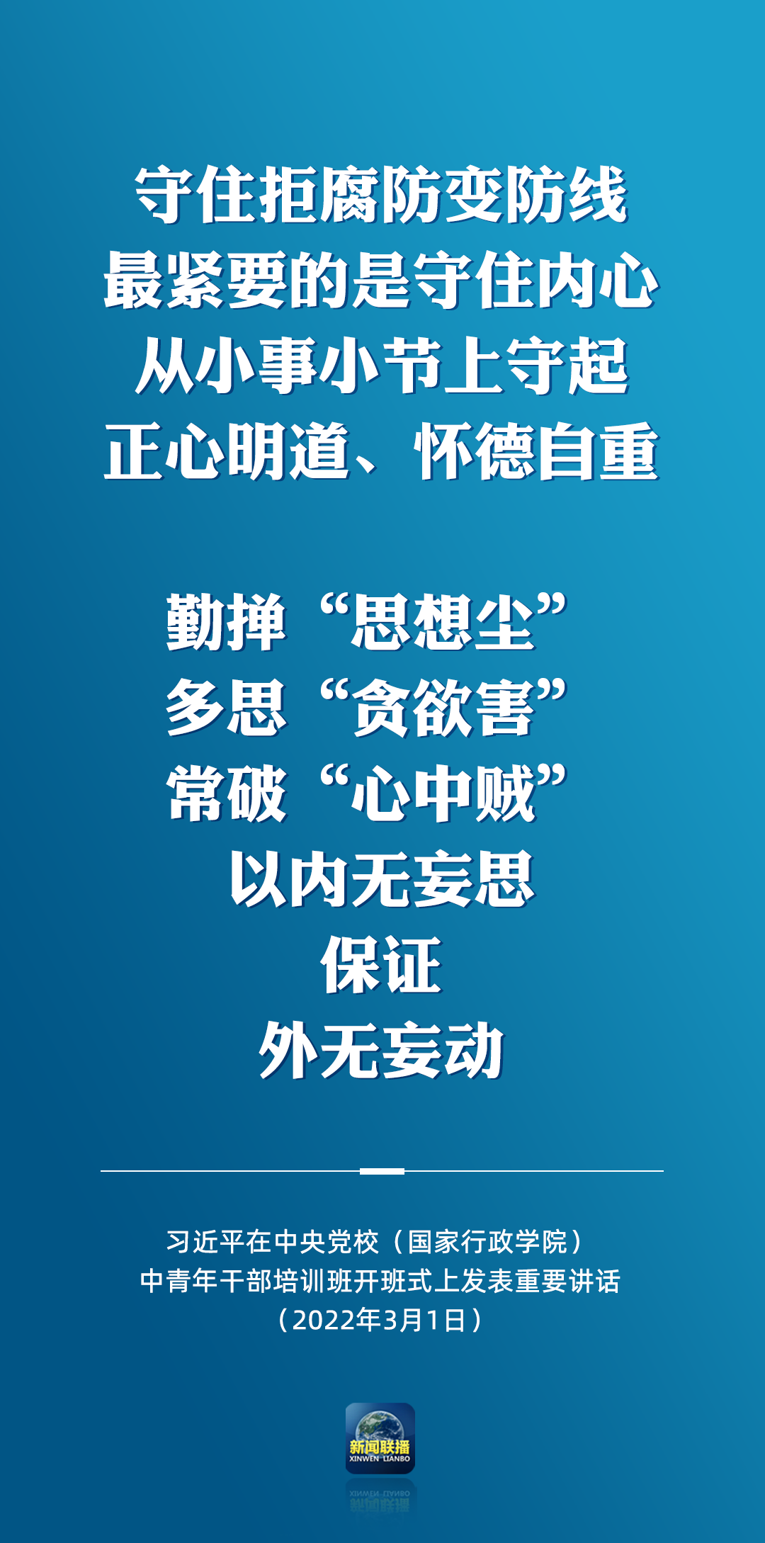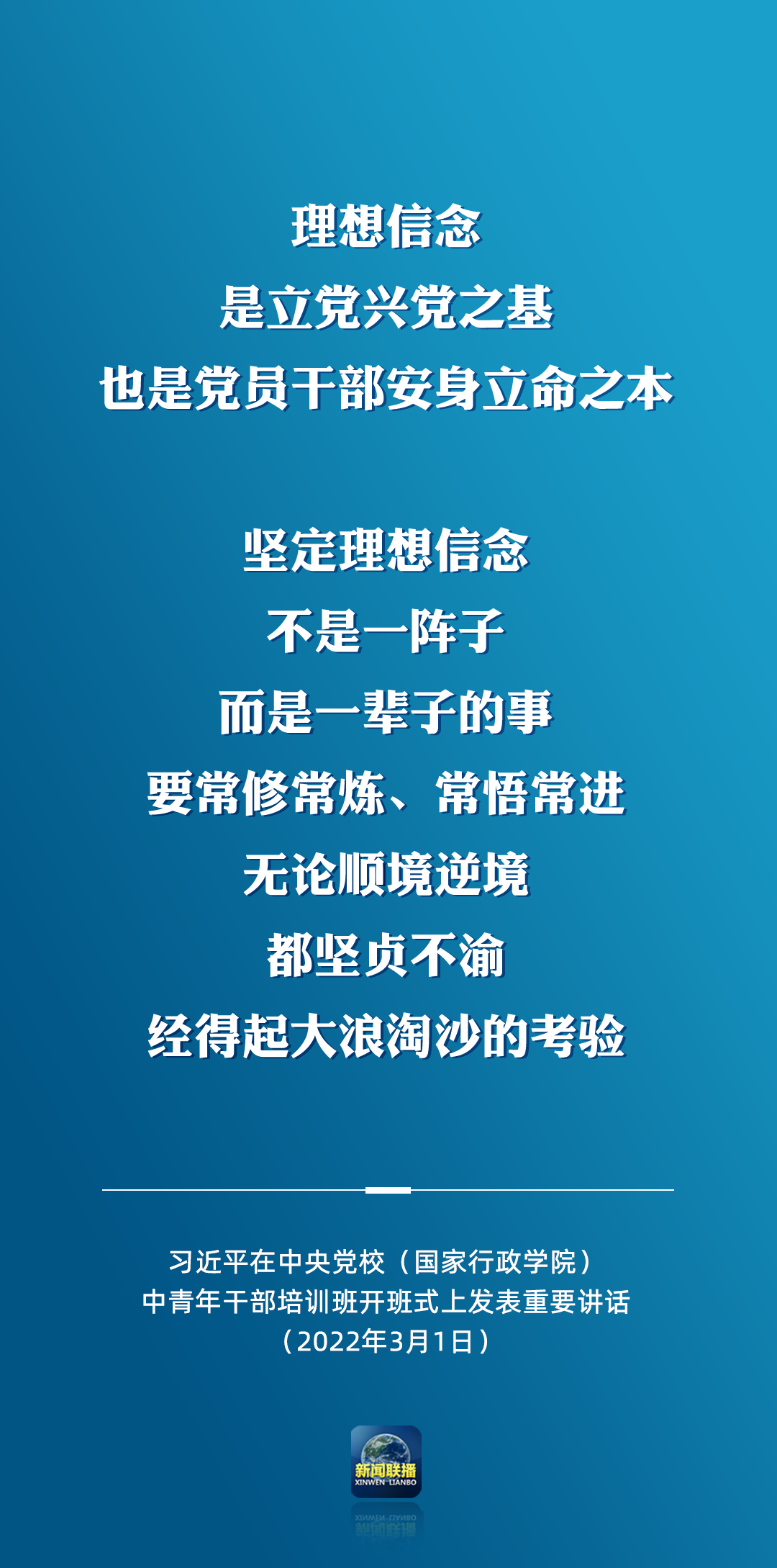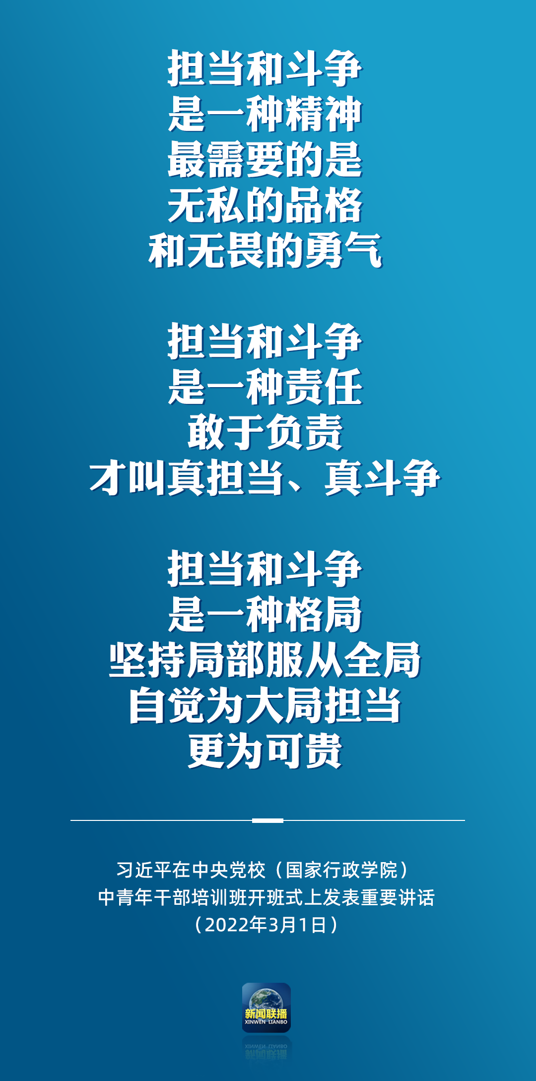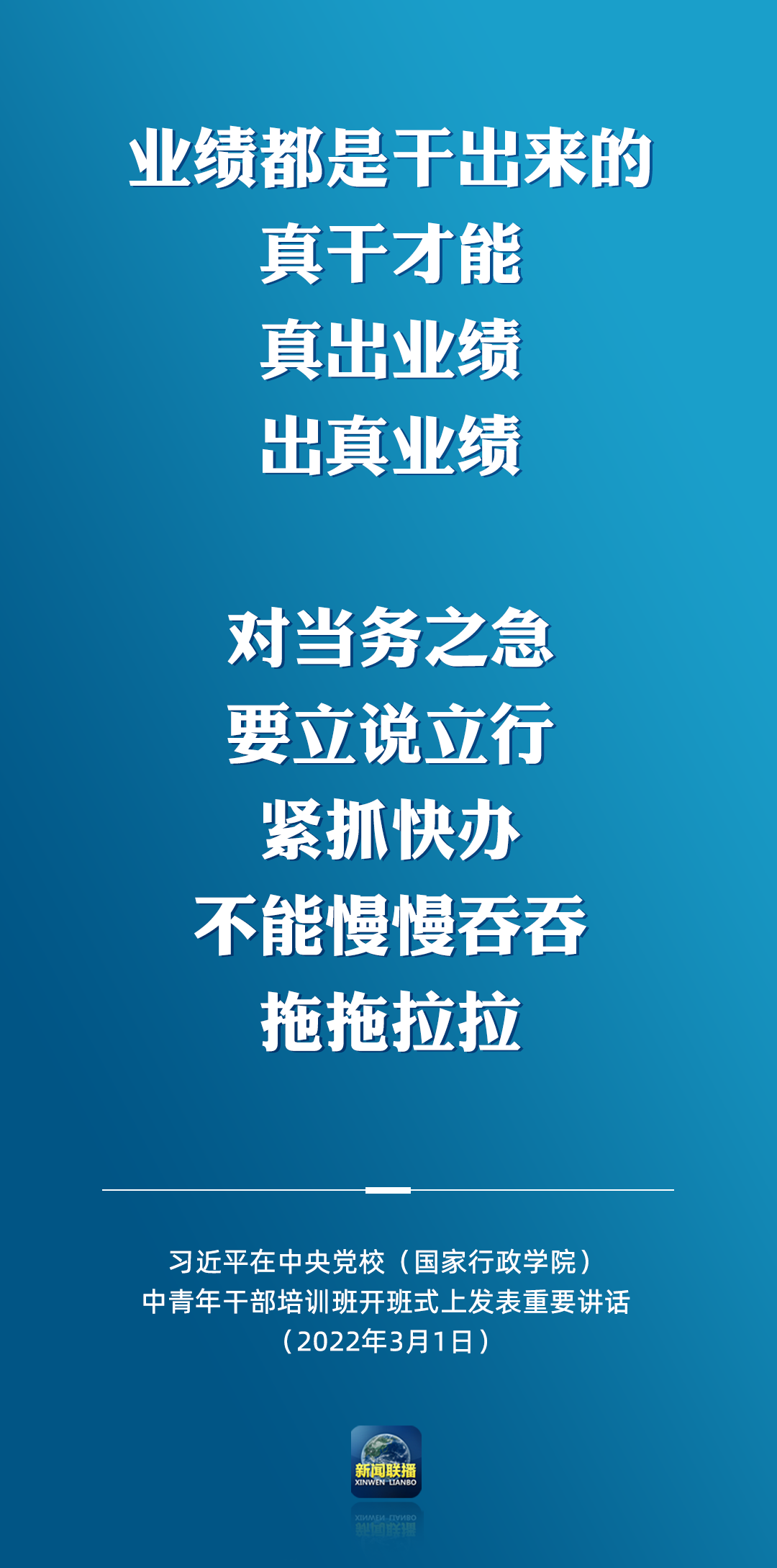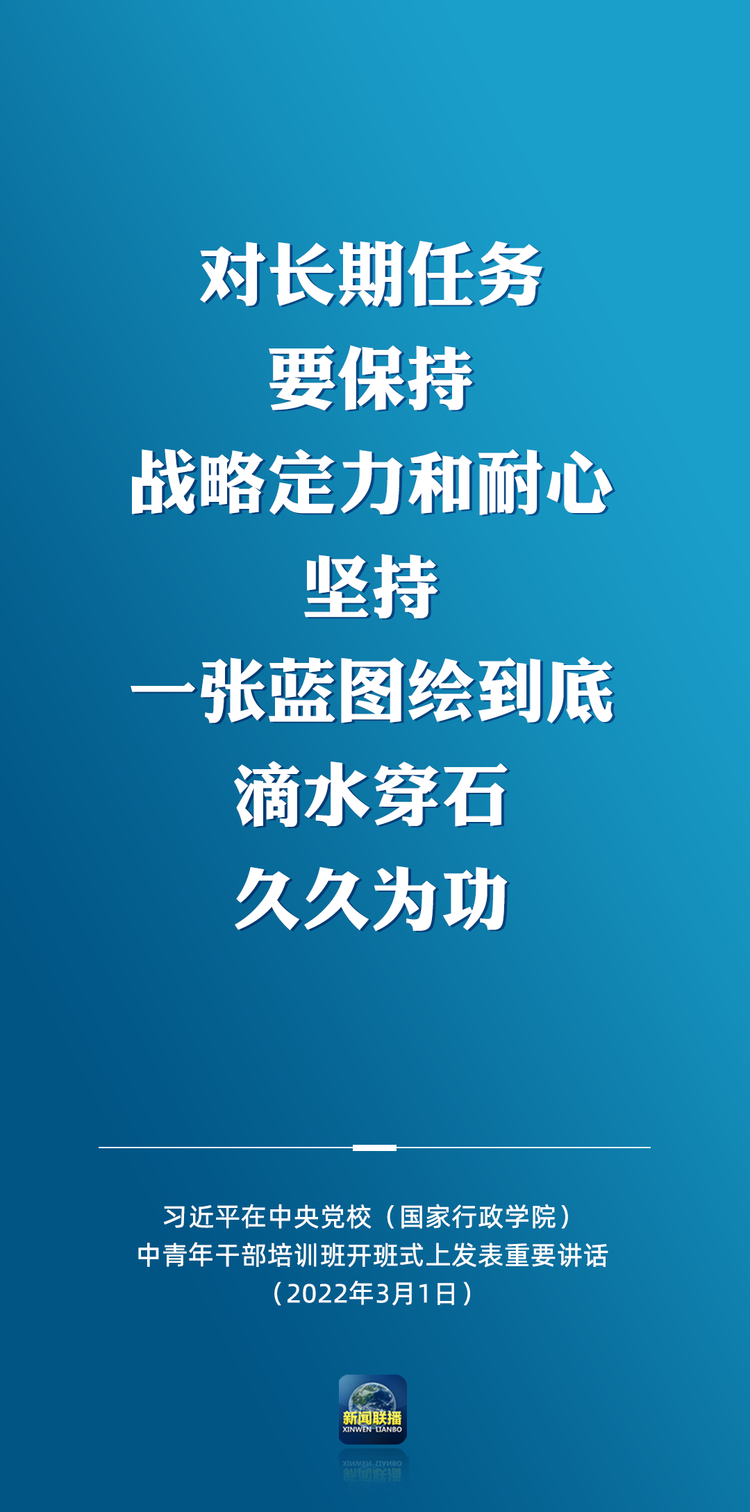 中共中央总书记、国家主席、中央军委主席习近平在开班式上发表重要讲话强调,年轻干部是党和国家事业发展的希望,必须筑牢理想信念根基,守住拒腐防变防线,树立和践行正确政绩观,练就过硬本领,发扬担当和斗争精神,贯彻党的群众路线,锤炼对党忠诚的政治品格,树立不负人民的家国情怀,追求高尚纯粹的思想境界,为党和人民事业拼搏奉献,在新时代新征程上留下无悔的奋斗足迹。