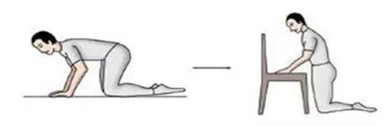双手支撑,依靠椅子,缓慢起立。
