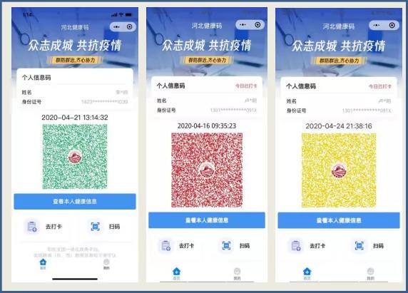 “河北健康码”是利用全国一体化政务服务平台汇聚的国家相关部门数据,结合我省防疫健康相关信息和居民个人健康自主申报信息开发的疫情期间个人出行的电子健康凭证,作为在交通卡口、居住小区、工厂厂区以及公共管理和服务机构通行的有效凭证,无需另行开具相关证明材料。通过亮码、扫码可实现快速核验、精准管控、一次申报、全国通用,对保障居民疫情防控期间安全便捷出行、推动人员安全有序流动具有重大意义。