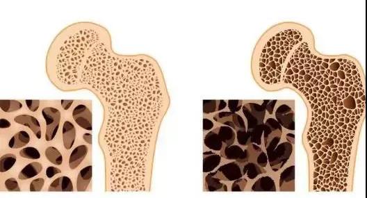 正常人(左)和骨质疏松患者骨质结构示意图