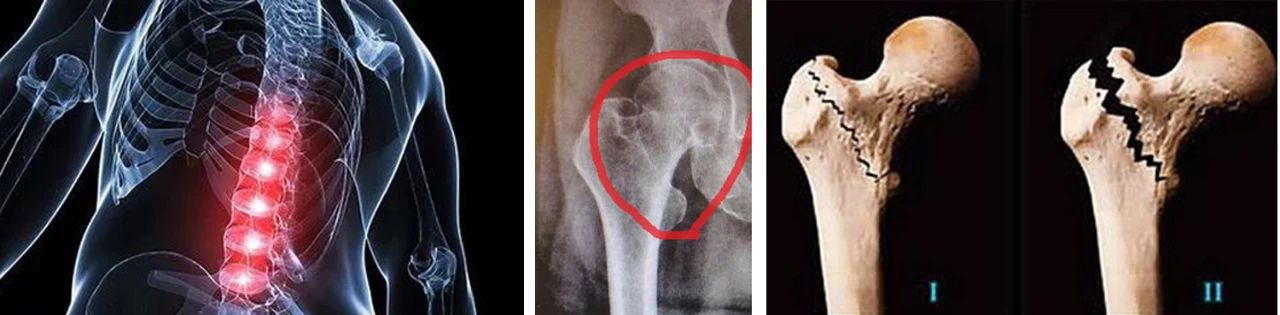 老年人摔倒时,有三大部位最容易发生骨折,分别是腰椎压缩性骨折、髋部骨折(股骨颈或转子间骨折)和桡骨远端骨折。