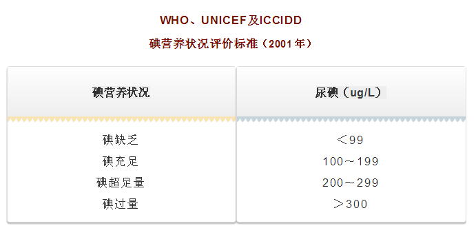 世界卫生组织推荐成人每日碘摄入量为 150微克,孕妇和乳母为 250微克。现在市面上多数含碘食盐中,每克盐含碘 20~50微克,WHO推荐每人每天的食盐摄入量是 6克,则理论上摄入碘应为 120~300微克。