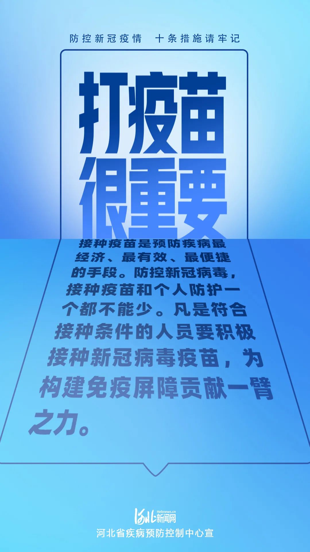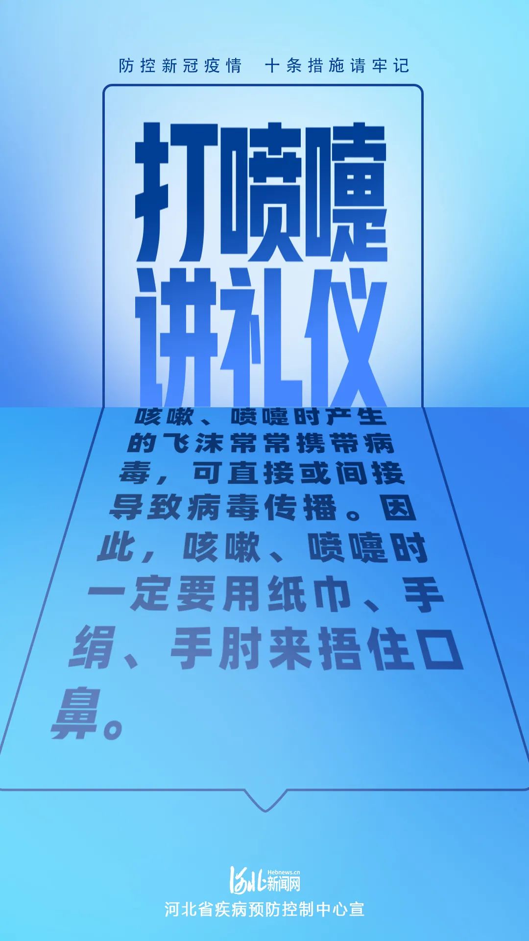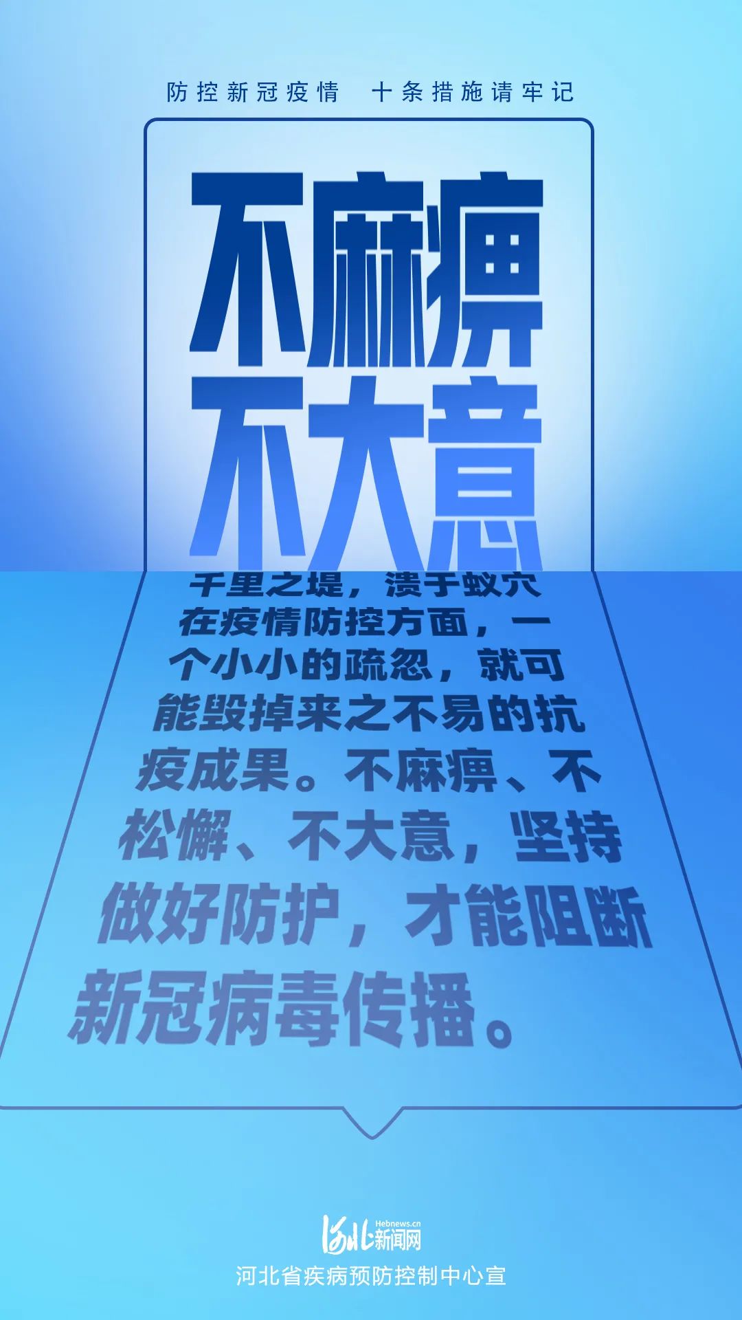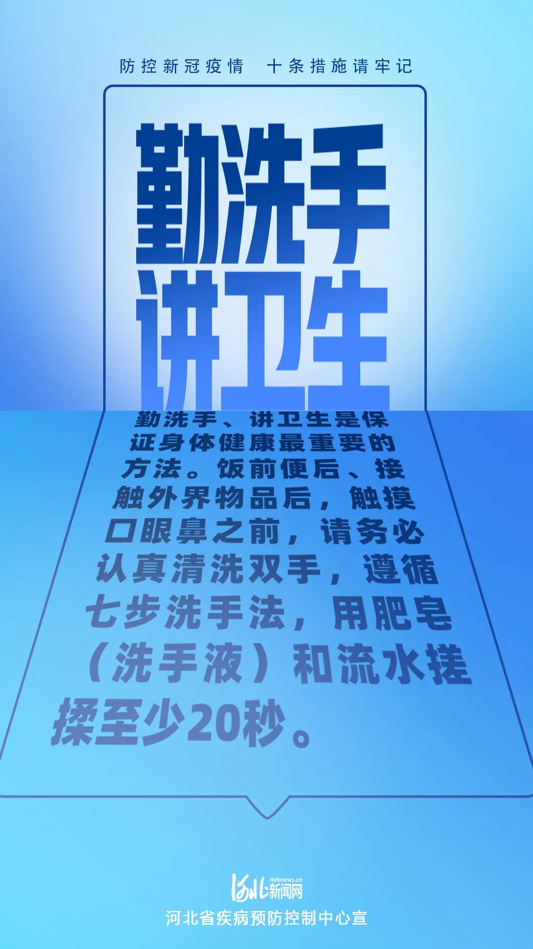 针对当前国内新冠肺炎疫情形势,8月6日,河北省疾病预防控制中心发布防控新冠肺炎疫情十条措施,呼吁公众继续严格做好个人防护及健康监测。