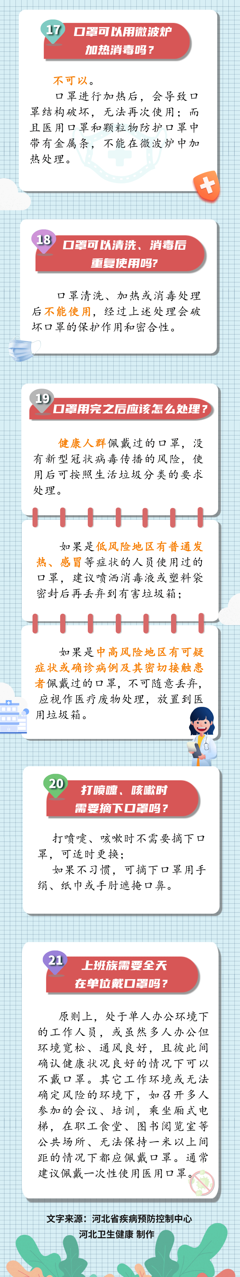 河北省疾病预防控制中心:口罩佩戴21问(二)