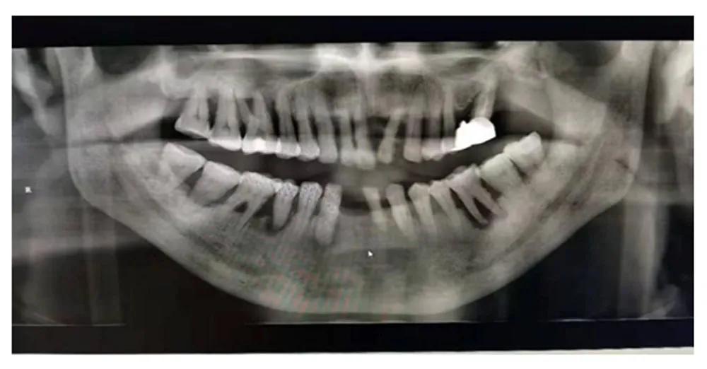 全景片又称曲面体层片,可以在一张胶片上完整、清晰地显示上颌骨、下颌骨全貌,上下颌牙列情况,牙槽骨情况,能清晰显示上颌窦腔、窦壁、窦底情况,以及颞颌关节情况,并对颌骨周围疾病的诊断提供帮助。
