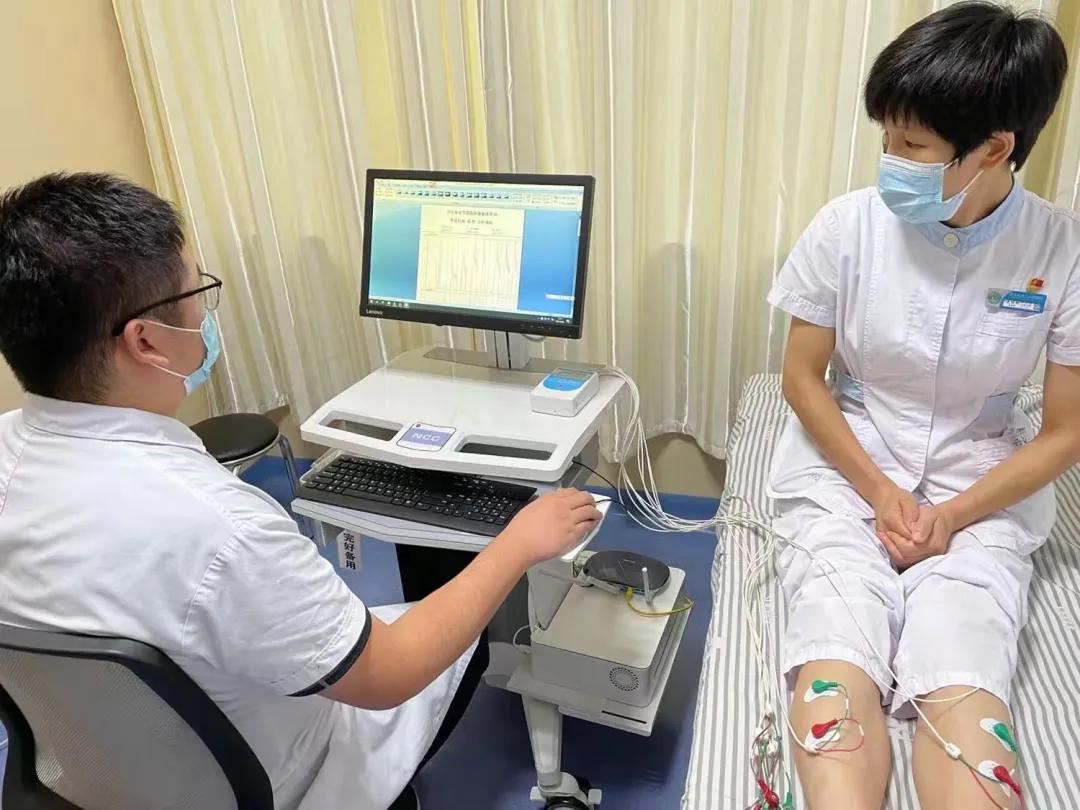 医护人员现场演示表面肌电图检查仪