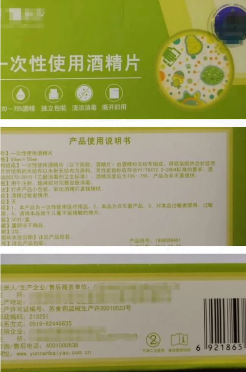 有些省份对临床上使用的“一次性使用酒精(棉)片”, 一片一独立包装,按照医疗器械管理,颁发有械字号注册证书。
