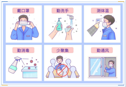 疫情防控,人人有责。广大公众应做到:个人防护不放松,风险地区不前往,报备信息不要忘,健康监测不松懈,疫苗接种不犹豫。