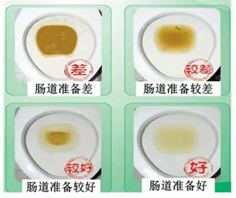 肠道清洁标准:大便呈无色稀水样,没有固体粪便、粪渣,可根据腹泻出大便的性状分为好、较好、差和较差四级,获得好和较好的淡黄色稀水便,可认为是高质量的肠道准备。