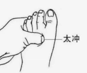 按摩方法:取坐位,用拇指沿第1、2跖骨间从前向后推按,当有骨性阻挡且有凹陷的地方就是太冲穴,用拇指点揉2-3分钟。