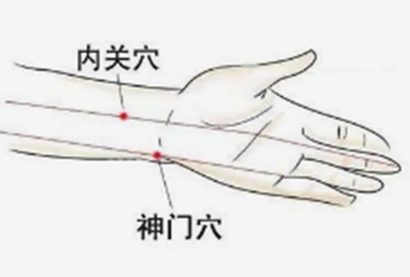 左右手交替,用大拇指点按神门穴10-20分钟。点按刺激神门穴,用力不要过重,有酸胀感为宜。
