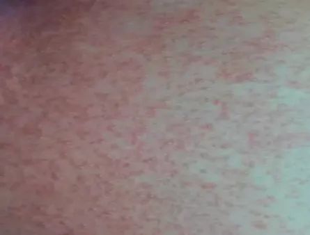 临床表现 根据汗管破裂位置不同,分四种类型,白痱、红痱、脓痱、深在性痱子。白痱最常见,为针尖大小的、透明的、表浅的水疱,无炎症反应,无自觉症状。红痱为汗液在表皮棘层引起,好发于肘窝、腘窝、皱褶部位,对称分布,皮损为针尖大小的丘疹,丘疱疹,周围有红晕,自觉瘙痒、灼痛、灼热。天气转凉后轻度脱屑而愈。脓痱好发于四肢屈侧及阴囊,脓疱多为针尖大小,表浅,脓液培养无细菌生长。深在性痱子为汗管在真皮上部破裂引起,密集分布于躯干及四肢,为深在的白色丘疹,不痒,除面、腋窝、手足代偿性出汗增多外,全身皮肤出汗减少。
