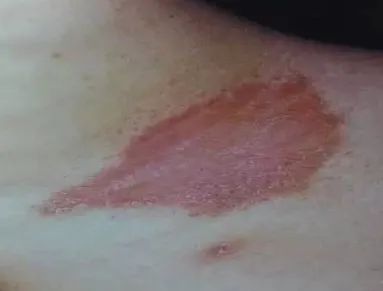临床表现 好发于肥胖者或婴儿,累及皱褶部位如颈、腋窝、乳房下、脐部腹股沟、会阴、指趾蹼等处,婴儿多见于颈部和肛周,初起为相互摩擦部位皮肤皱面一致的水肿性暗红色斑片,久之可出现丘疹、水疱甚至糜烂、渗液、溃疡,自觉灼痛。可继发细菌、真菌感染。