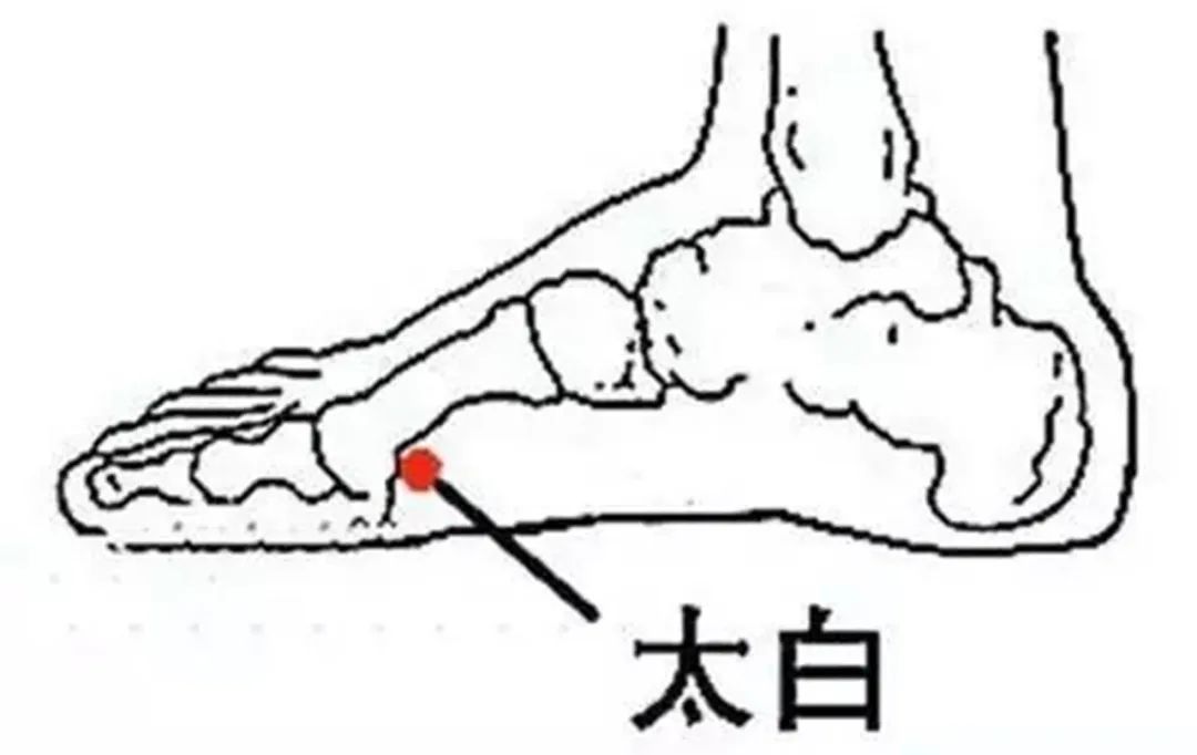太白穴是足太阴脾经的“原穴”,在足内侧缘,当足大趾本节(第1跖趾关节)后下方赤白肉际凹陷处,为脾经经气的供养之源,有清热化湿、通经活络的作用。