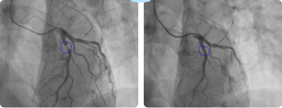 患者前降支及右冠均有狭窄,均有手术指征,由于“罪犯”血管为前降支,故于前降支成功植入支架一枚;择期处理右冠。