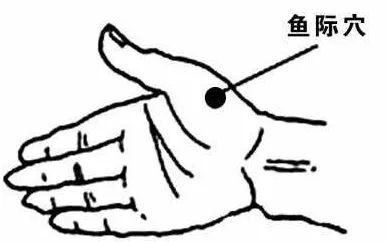 鱼际穴位于第1掌骨中点桡侧,赤白肉际处,属手太阴肺经的“荥穴”,五行属性属火。“荥主身热”,故此穴具有清肺泻火、清宣肺气的作用,每天掐揉2~3分钟,可治疗风热犯肺、痰热壅肺所致的咳嗽气喘、胸闷、胸痛、咽干、咽喉肿痛、失音等。
