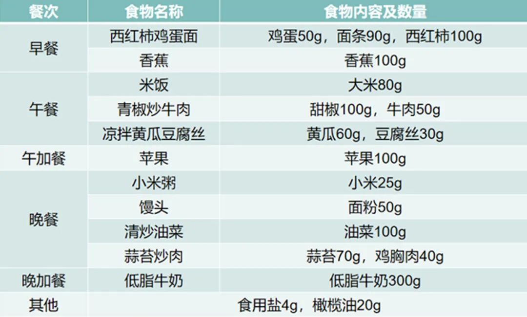 注:全日能量1572.2kcal,蛋白质65.2g(16.6%),脂肪42.2g(24.2%),碳水化合物232.8g(59.2%)。