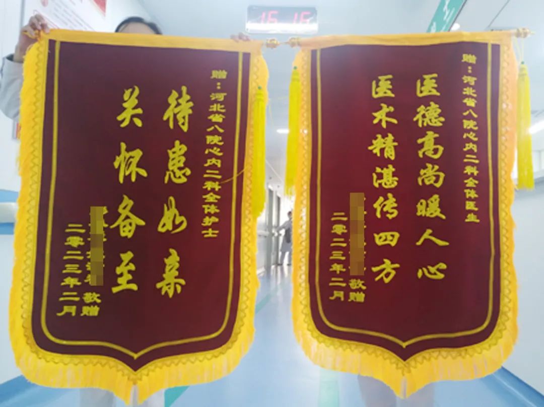 时间过去1个月了,彭老先生回到蜜桃视频 复查,还送来了感谢信和锦旗,对心内二科全体医护人员表示感谢。