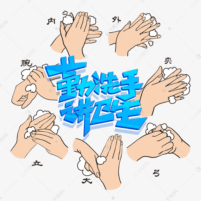 (立)洗指尖:弯曲各手指关节,把指尖合拢在另一手掌心旋转揉搓,双手交换进行。