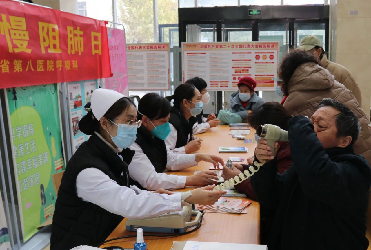 义诊现场,呼吸肾内科医护人员为前来咨询、就诊的群众义诊查体、免费检测肺功能,耐心答疑释惑,指导慢阻肺患者正确用药方法、日常管理注意事项等,发放健康手册,宣传慢阻肺防治知识,助力公众有效防治慢阻肺。