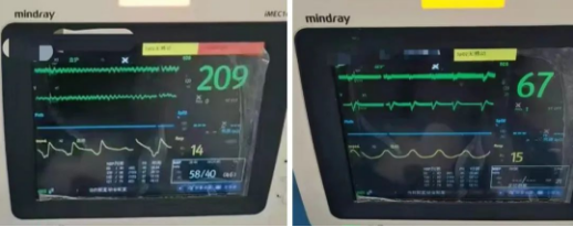 经医护团队全力抢救,心电监护显示患者由室颤恢复窦性心律