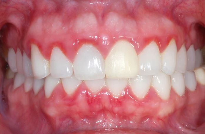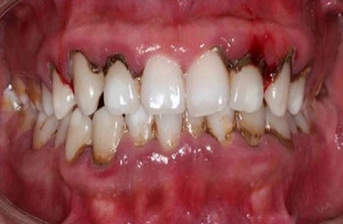 如果平时刷牙就是随便刷几下,总共不到一分钟,也没有养成定期洗牙的习惯,就会有大量菌斑、软垢以及牙结石覆盖着牙龈。牙龈受到牙结石、炎症反复刺激后,逐渐发生色、形、质的改变,出现炎症,就会变得如同充血的气球一样,很容易造成出血、疼痛。发炎的牙龈则会颜色变红、变深、呈现为鲜红或暗红的颜色,肿大疏松,牙龈沟也会加深并失去防御功能,探诊或轻轻刺激后,牙龈沟就会出血。