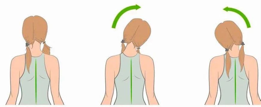 站着或坐在椅子上,慢慢地把头向右肩倾斜,同时保持左肩向下,保持这个姿势5到10秒,然后放松。再左侧重复上述动作,头朝左肩倾斜,右肩向下,保持此位置5到10秒;整个过程重复5次。这个动作会拉伸脖子的两侧。