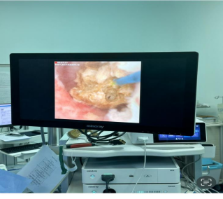 针对该患者,普外泌外科采用了经尿道输尿管软镜钬激光碎石术,输尿管软镜的优点适应于输尿管上段,肾盂肾盏内结石,输尿管软镜末端可以双向弯曲,弯曲度达到270°,可在输尿管肾盂内通过角度变化找到结石,再借助钬激光将结石打碎。