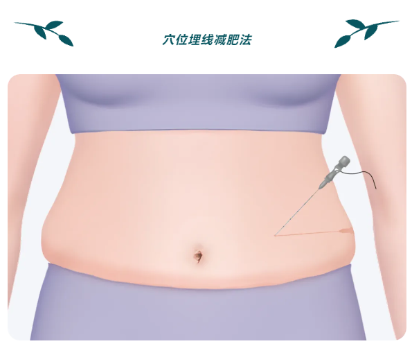 穴位埋线减肥就是将可吸收的蛋白线埋入穴位,能持续刺激穴位,起到疏通经络、调和气血的作用,使身体的代谢功能和内分泌功能得以调整,纠正阴阳失衡,促进脂肪代谢。