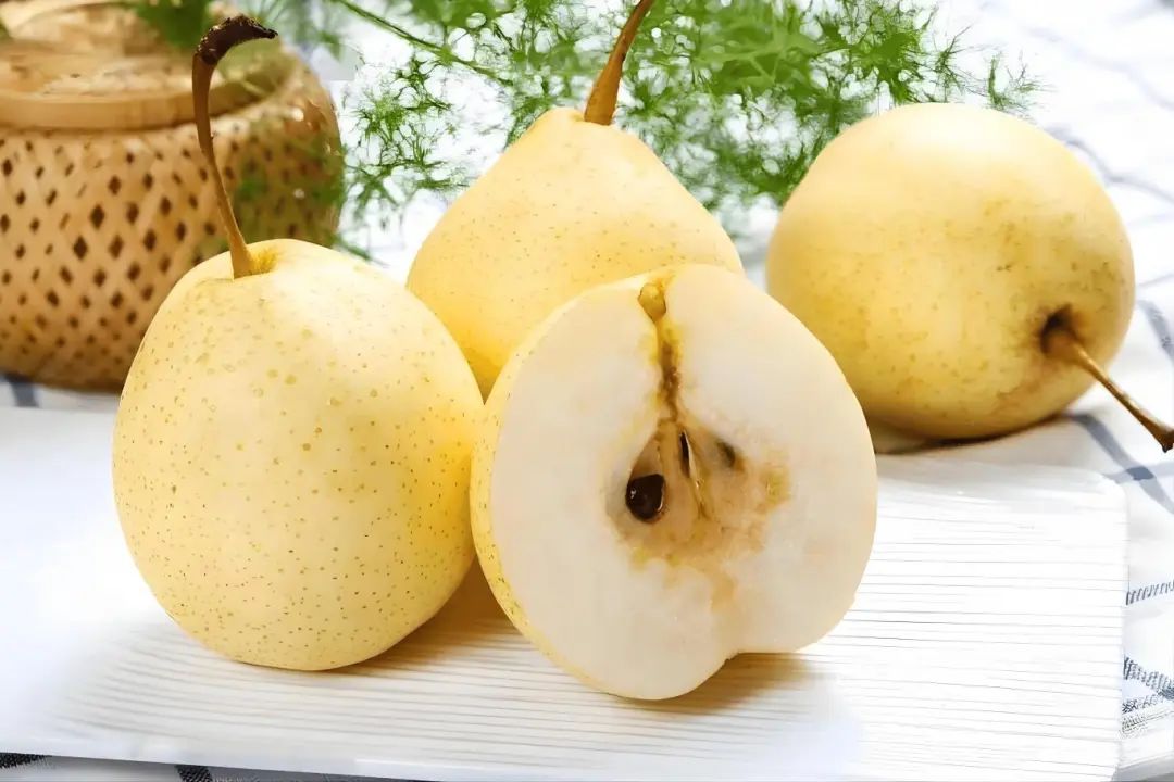 梨鲜嫩多汁,含有85%的水分,酸甜适口,含有丰富的维生素和钙、磷、铁、碘等微量元素等,被称为“天然矿泉水”,自古尊为“百果之宗”。