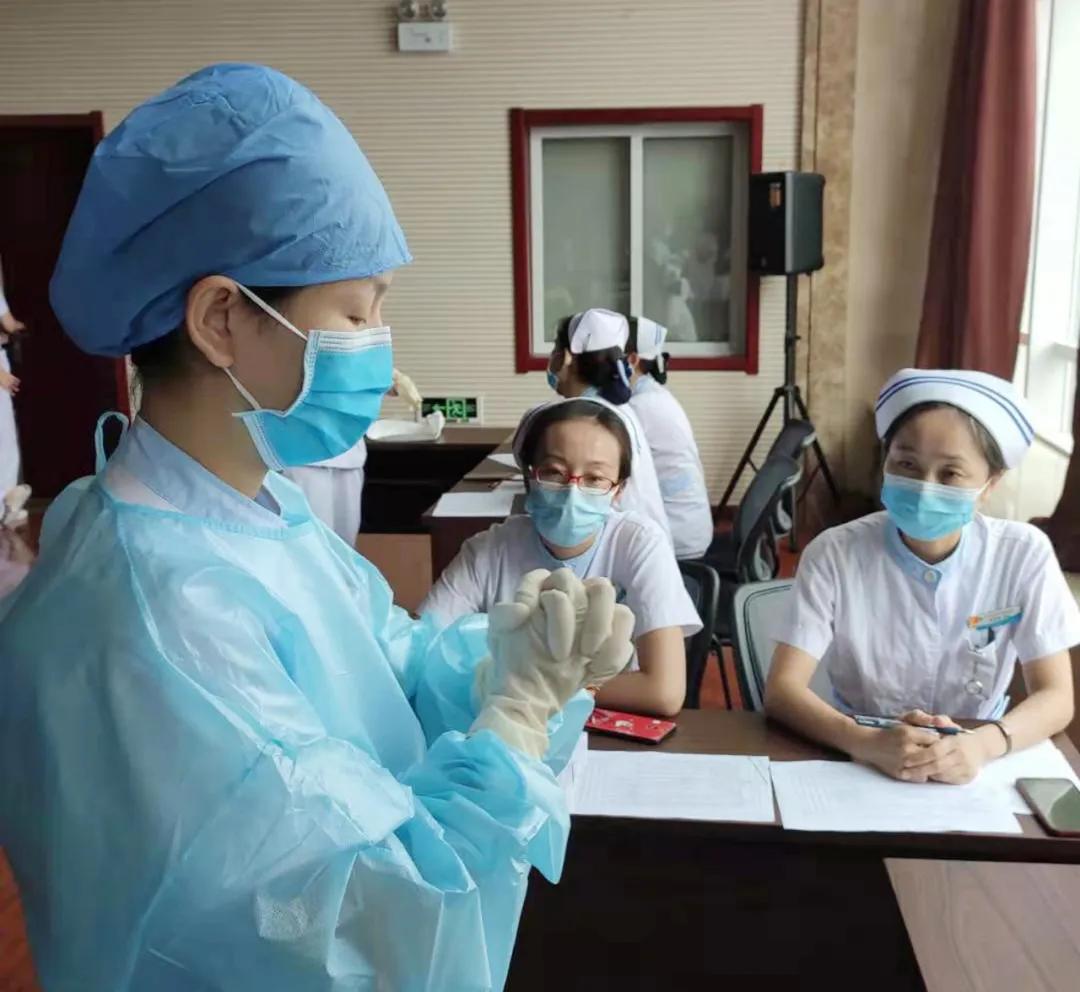 护理技能操作是护士专业能力的重要组成部分,是护士从事护理工作的必备条件,护理技术操作能力的高低,直接影响着护理工作质量。此次考核在开展徒手心肺复苏技术考核的同时,还开展了防护用品穿脱操作考核,以进一步做好疫情常态化防控工作,加强医务人员自身防护,保障自身安全。考核中,严格按照评分细则打分,每项考核完毕后,评委老师对参加考核的护理人员逐一进行点评指导,在充分肯定成绩的同时,针对操作中发现的问题提出改进要求,并对操作不熟练的护士进行了重新考核,确保人人“过关”。