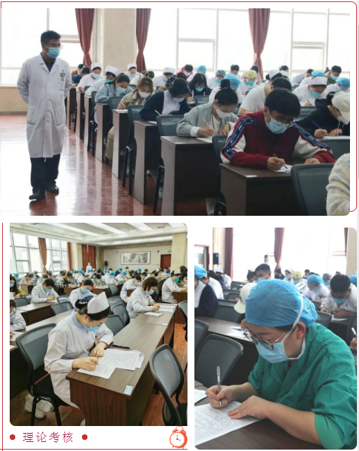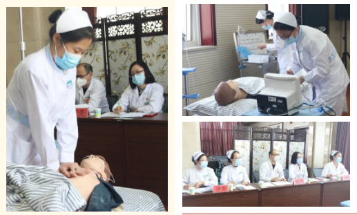 培训考核以贴近患者、贴近临床、贴近实际工作需要为原则,以培养护理人员良好的职业道德和职业情感为核心,院科培训与自主学习相结合,以考促学,以学促用,推动护理团队整体素质提升。考核分为理论考核与技能操作考核两部分,理论考核以内、外、基础护理为主要内容,分两场进行,全院护理人员参加考试。技能操作考核以应急情景模拟演练的形式进行,每个科室推荐2名护士为一组,现场抽取考试顺序及案例进行考核。