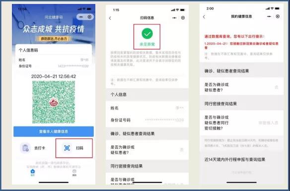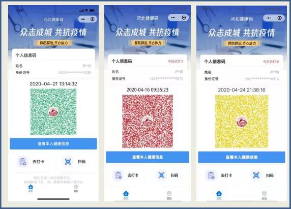 “河北健康码”是利用全国一体化政务服务平台汇聚的国家相关部门数据,结合我省防疫健康相关信息和居民个人健康自主申报信息开发的疫情期间个人出行的电子健康凭证,作为在交通卡口、居住小区、工厂厂区以及公共管理和服务机构通行的有效凭证,无需另行开具相关证明材料。通过亮码、扫码可实现快速核验、精准管控、一次申报、全国通用,对保障居民疫情防控期间安全便捷出行、推动人员安全有序流动具有重大意义。