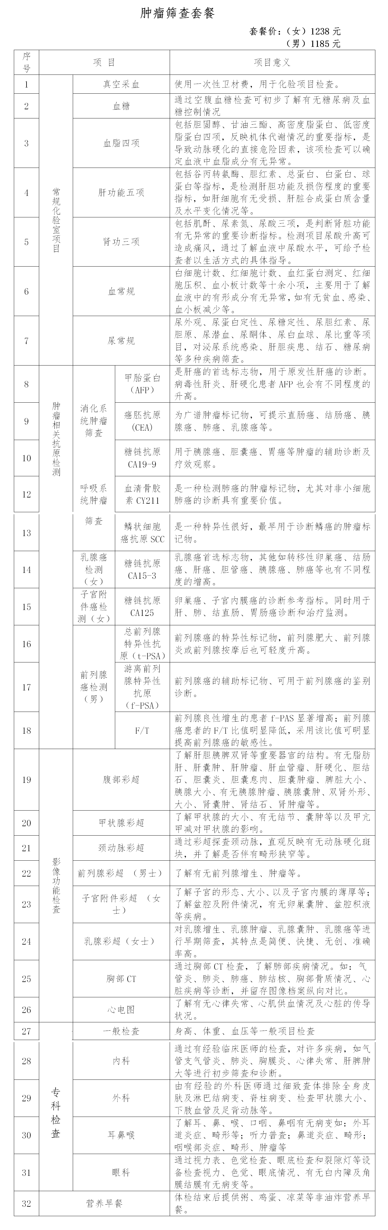 专科体检套餐系列