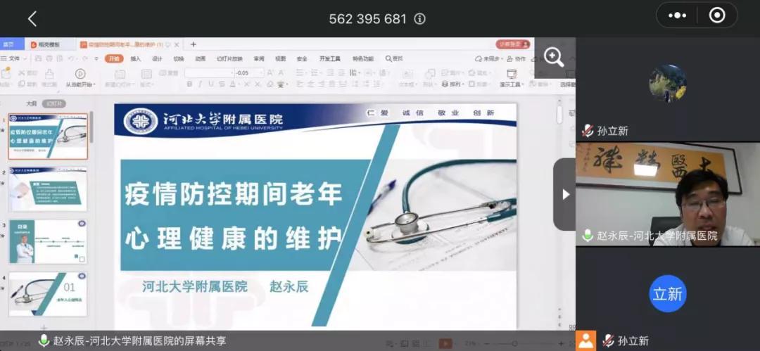 河北大学附属蜜桃视频 赵永辰教授讲解《疫情防控期间老年心理健康的维护》
