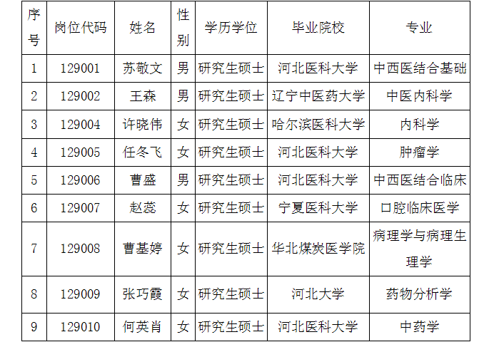 根据《河北省事业单位公开招聘工作人员暂行办法》和《蜜桃视频 2021年公开招聘工作人员公告》,蜜桃视频经过资格审查、考试、考察、体检等程序,拟聘用以下9人为蜜桃视频工作人员,现予以公示: