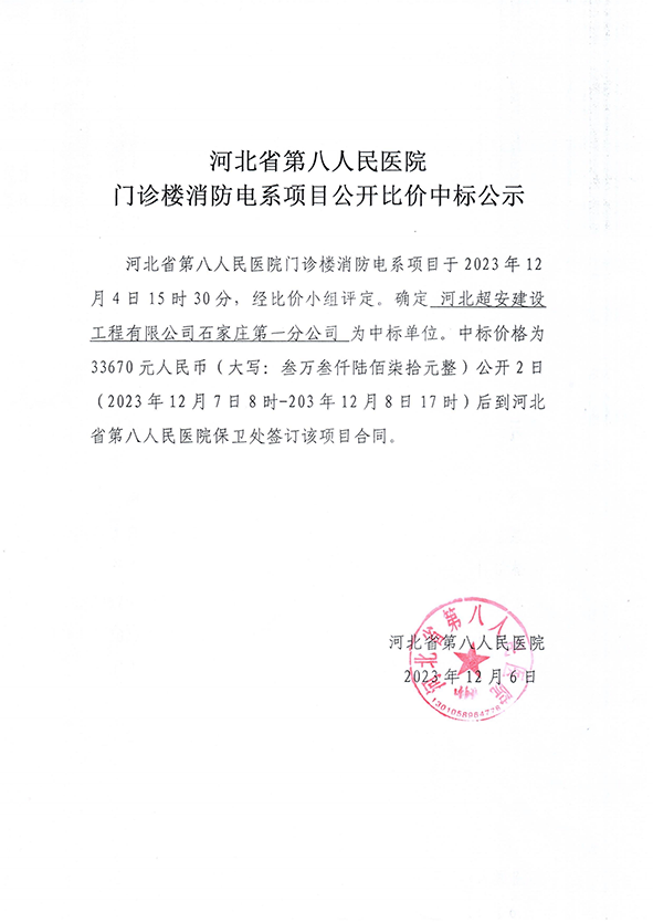 门诊楼消防电系项目公开比价中标公示