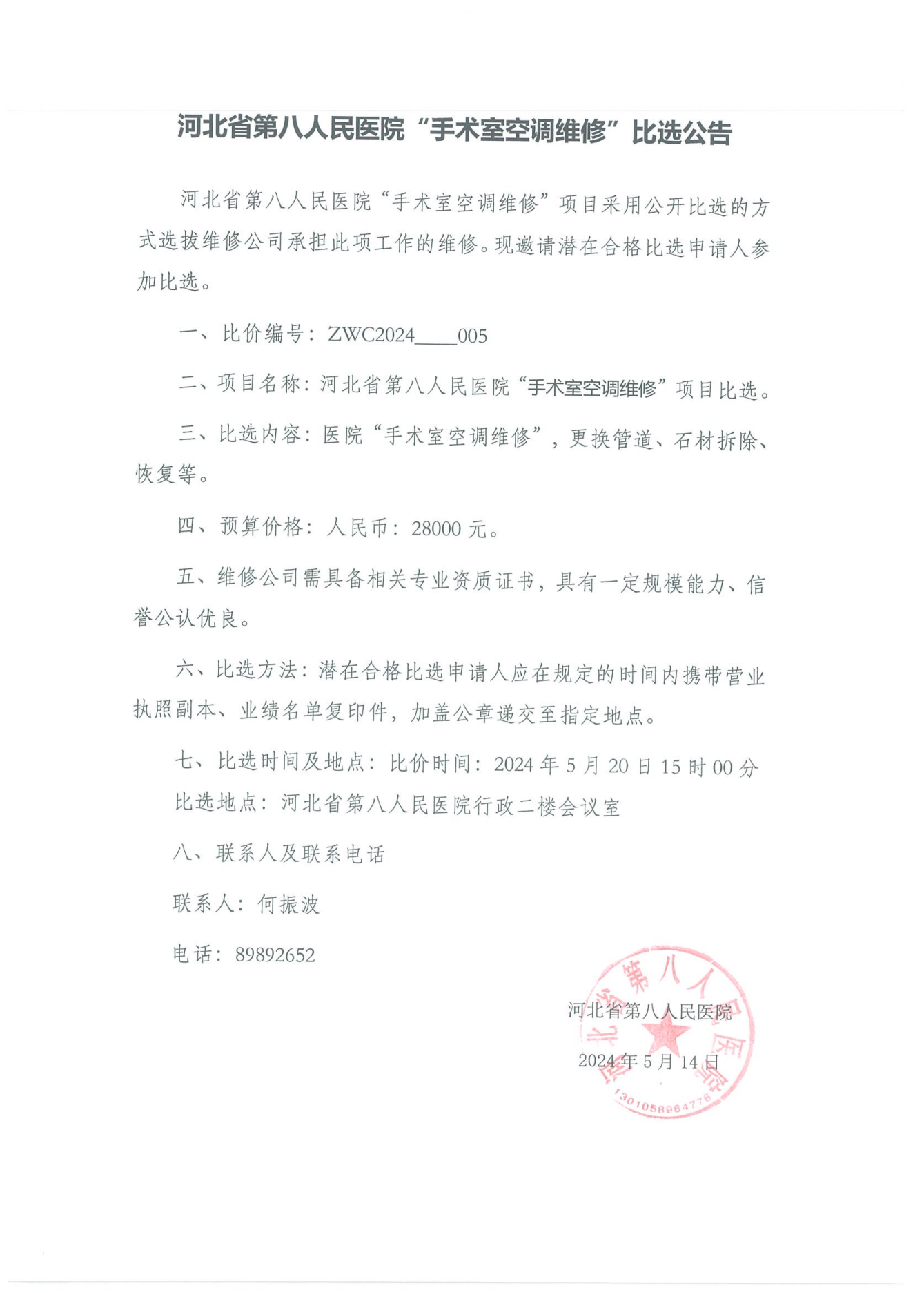 蜜桃视频 “手术室空调维修”比选公告