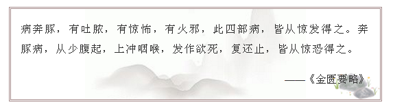 “奔豚,气上冲胸,腹痛,往来寒热,奔豚汤主之。”孙立新说,惊则气下,恐则气结,怒则气上。“奔豚汤”主要治疗的就是由于受到惊吓或生气、恼怒而导致肝气郁结,气逆向上并进窜动,造成胸腹、两胁疼痛的症状,旨在疏肝清热,降上逆肝气和向上的胃气,使肝胃逆气下降,腹痛减轻。