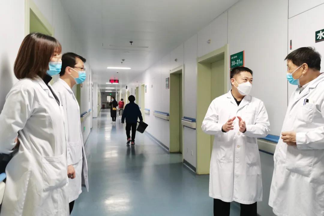 早上8点,闫涛就冒着冬日的严寒来到普外科病区,和科里的医生开始了每次来院例行的大查房。在普外科副主任刘坤陪同下,闫涛认真查看病区入住患者,向主管医生详细询问住院患者身体情况、入院具体原因及治疗方案,耐心解答家属、患者提出的问题,并对患者的治疗方案进行进一步完善。