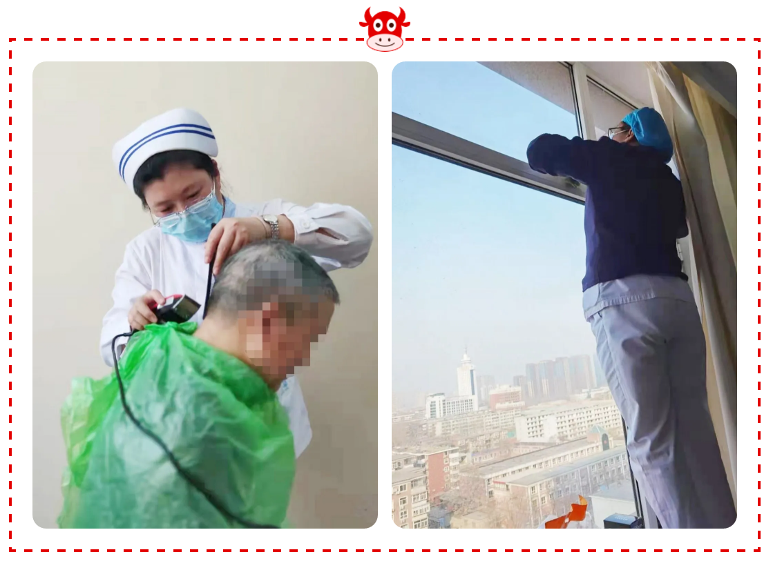 右:神经内科医护人员节前开展环境大扫除,为患者打造干净整洁的住院环境。
