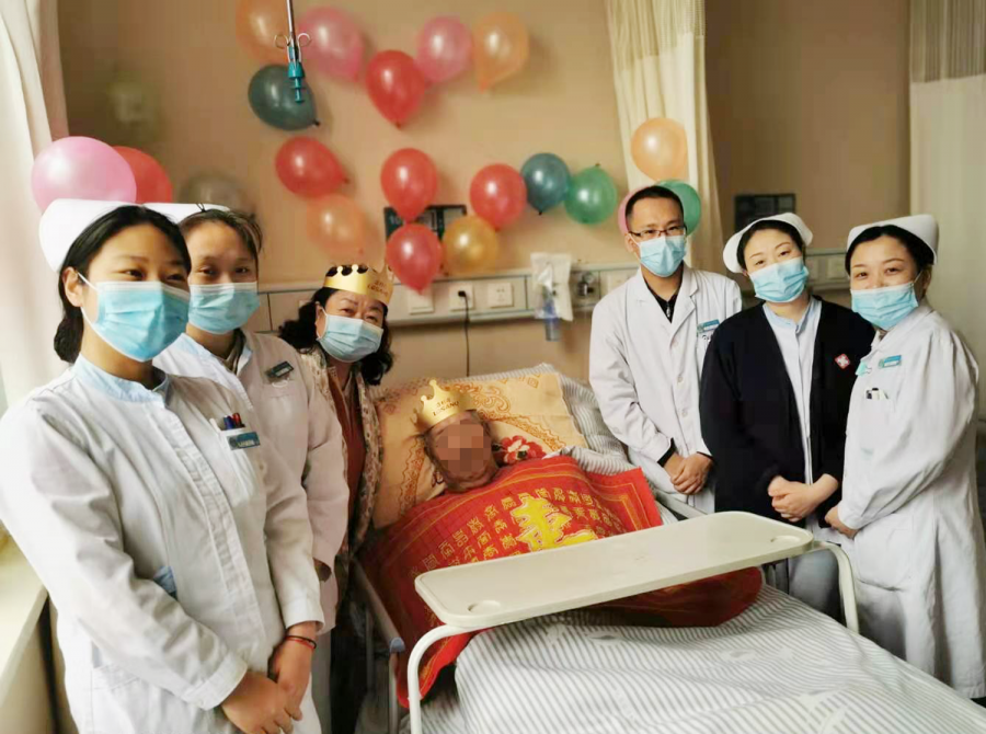 当天,心内二科医护人员为王爷爷精心装扮病房,准备了生日蛋糕,送上诚挚的祝福,祝老人“福如东海长流水,寿比南山不老松”。