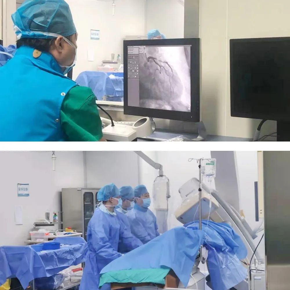5月27日,张新勇如约而至,与心内二科专家一起为袁老先生进行了冠状动脉介入治疗。术中冠状动脉造影检查显示,袁老先生左侧冠脉血管前降支近段可见弥漫性狭窄,最严重的可达99%,经过认真评估后,顺利为其行冠脉支架植入术。术后,袁老先生胸闷、胸痛及活动后气短等不适症状消失,老人和家属对治疗效果十分满意。