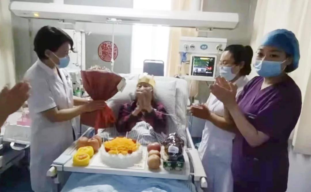 住院期间,适逢李奶奶92岁生日,重症监护室医护人员还为李奶奶准备了鲜花和蛋糕送到病床前,为她送上生日祝福。在医护人员的努力下,李奶奶的病情一天天好转,精神状态也一天比一天好,身体渐渐恢复。