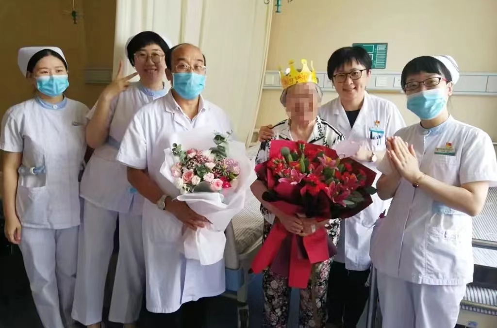 李奶奶住院期间正逢80岁生日,唯一的儿子远在美国,已经3年没有回来了。细心的责任护士发现李奶奶情绪低落,了解情况后告诉了科室同事,大家商量好一起为李奶奶过生日。当天,蛋糕、鲜花,医护人员的声声祝福,还有远隔重洋的儿子视频电话,让李奶奶激动不已:“孩子虽然没在身边,但是有你们在,我的心里暖暖的,你们不仅治好了我的病,还让我不再感觉孤单了。”