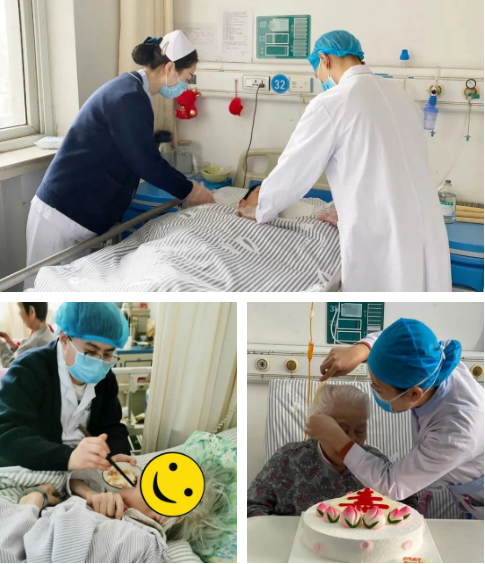 ◆ 护士陈彤彤暖心为患者贾奶奶梳妆打扮,让老人美美过生日