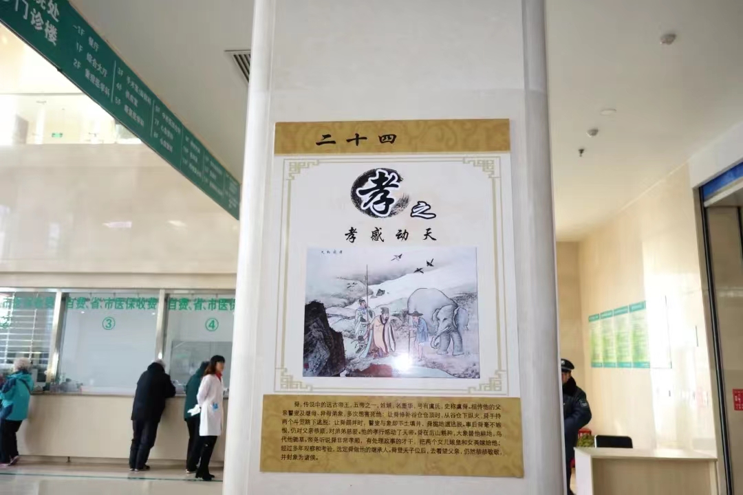 门诊大厅的慈孝文化展板、大厅里的休闲区,处处营造出老年友善氛围