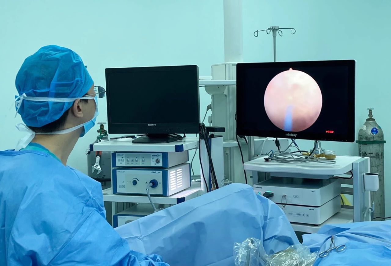 为膀胱结石患者行经尿道膀胱镜钬激光碎石取石术