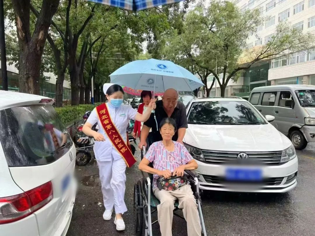 车位紧张,车开不进来,老人还在车里,这雨又下个不停,着急看病呀!”导诊人员一边安慰家属,一边迅速跑去推来轮椅,快步来到患者车旁,小心将老人搀扶到轮椅上,又撑起自己的雨伞,稳稳地为老人遮风挡雨。一路上,雨水打湿导诊人员的衣服,可她脚步沉稳又坚定。家属在路上不住地道谢:“太感谢你了,要不是你帮忙,真不知道该咋办。”短短几十米的路,在这暖心护送下,老人逐渐放松,感受到无比安心。抵达门诊大厅后,家属还在连连称赞,导诊人员微笑回应,并告知患者有需要就找我们,随后继续投入到自己的工作中。
